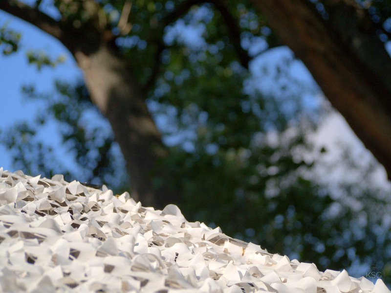 In the end we walked to a little community vegetable garden. The shade net there provided another interesting motif to contrast with the surrounding trees.