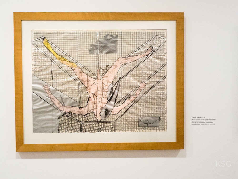 Beyond the sculptures, there are many two-dimensional art works on display here. In his works on paper, Gironcoli uses mixed techniques and drawings, and the drawings appear almost three-dimensional. He “animates” his own plastic works on paper, according to the exhibition catalogue at MUMOK.