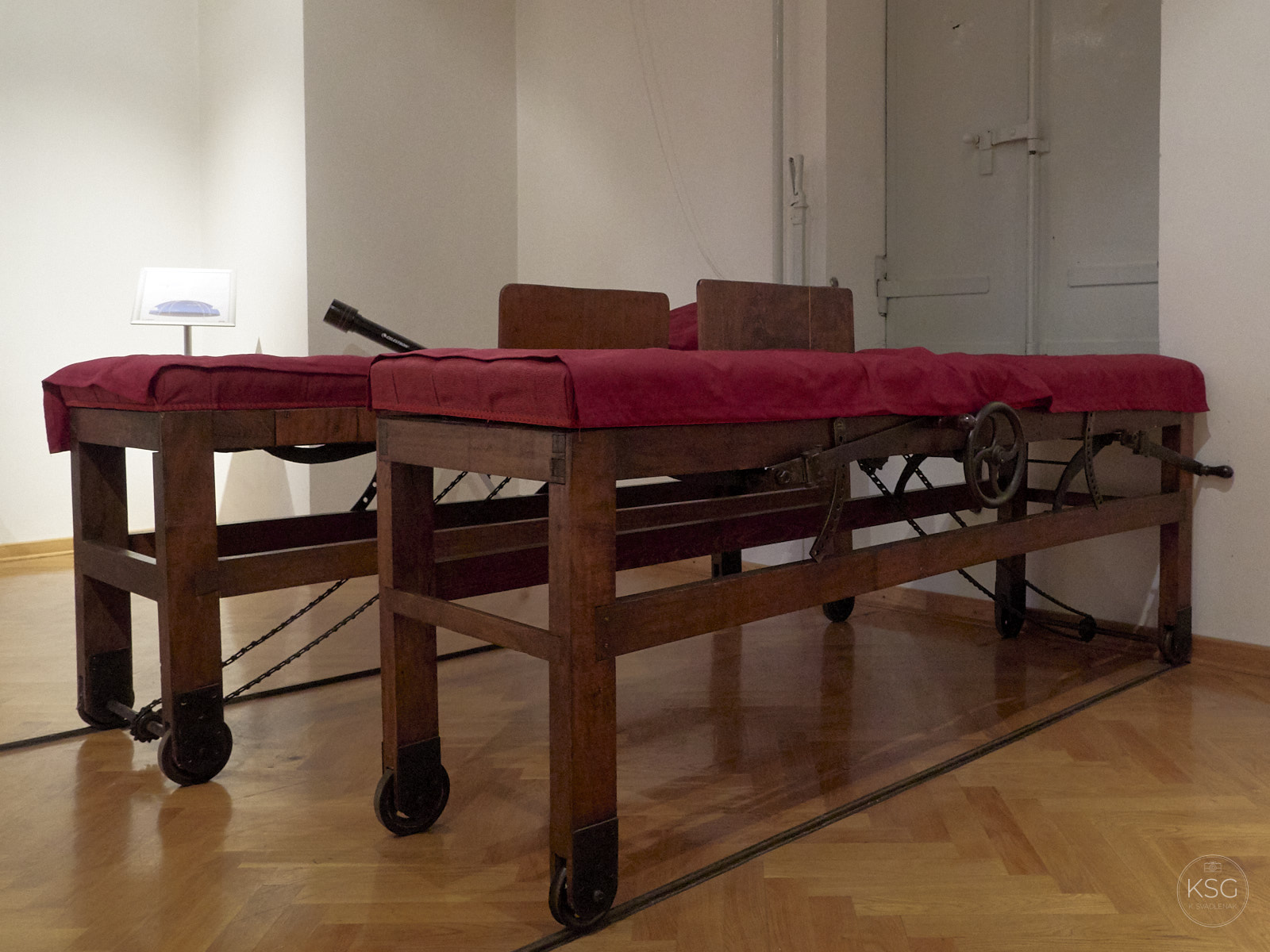 The rooms contain much of the original furniture, and almost all the floors are original parquet as well. Charmingly, there are two beds that kind of resemble posh deck chairs that were used by astronomers to look through the refractor — they needed to lie down and could adjust their position by pulling on some ropes. Usually they would be lying there all day during their scientific efforts, so having a comfortable spot was quite essential! Another little detail I liked is a sort of adjustable high chair, a nifty low-tech solution to the problem of having to adjust the sitting position to different levels depending on where the telescope had to be pointed. I think some of our modern-day furniture stores may have copied this concept…