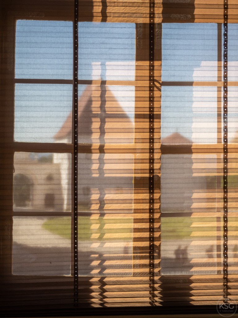One of the simplest things one can do and still achieve an “arty” effect is to photograph through different types of glass. The first two below are taken through thick semi-transparent glass at a greenhouse towards the garden. The second one is taken through a milky glass church window, and the third is inside the Goettweig museum tract, taken through window blinds lit up by the sun.