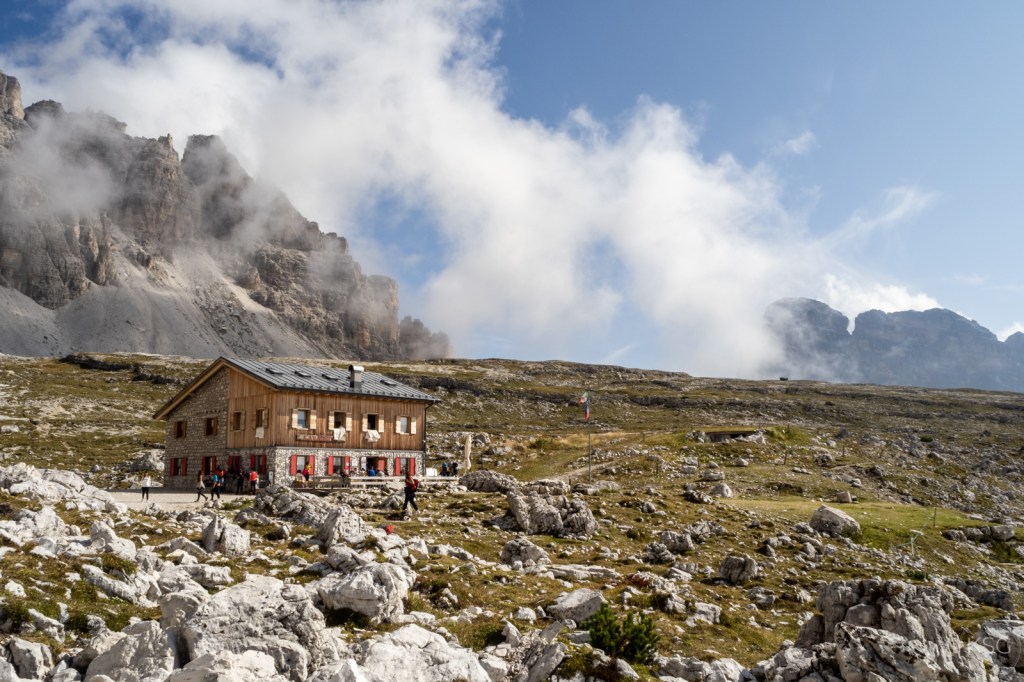 The first woman to climb this peak was Anna Ploner in 1874. It took longer for the other two peaks to be reached. Nowadays they are a much visited and climbed mountain range. Already in 1908, more than 2000 people visited the mountain hut Dreizinnenhütte, which was originally built in 1881, but destroyed in 1915 during the so-called “white war” at the high-altitude Alpine sector of the Italian front during the First World War. The Alpenverein Südtirol rebuilt the hut in 1922.