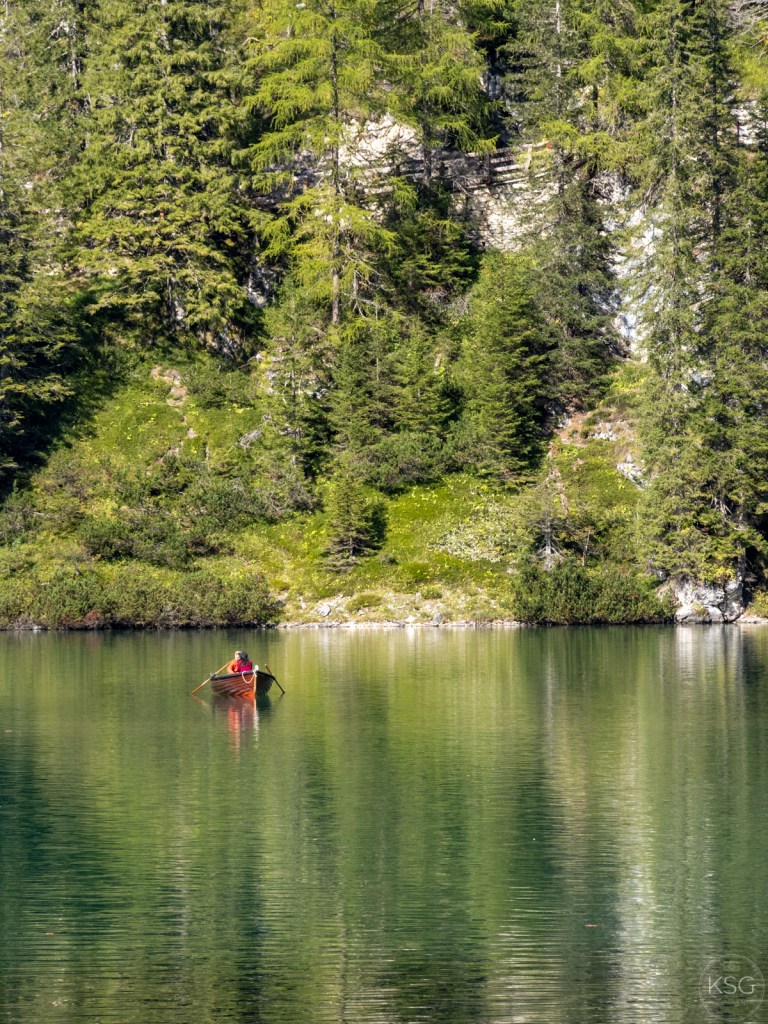 Since we were in the region, I wanted to see the Pragser Wildsee (Lago di Braies). This must be one of the most photographed Alpine lakes and has sometimes even been dubbed “Lago di Instagram” because it has appeared so much on that platform. It is also a tourist magnet, and in times of Covid-19 there is actually a reassuring requirement to wear face-masks while surrounding it! (Most people comply with the rules.)