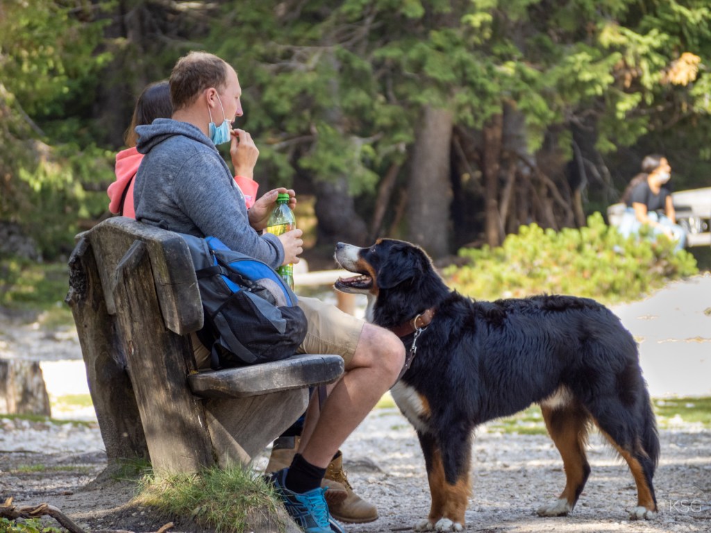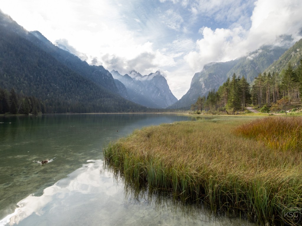 This beautiful lake is located 1494 m above sea level and is dominated by the imposing Seekofel massif (2810 m). It really is a beauty that is worth a visit, despite the “overtourism”. Many a dog was also enjoying the water during our hike around the lake.