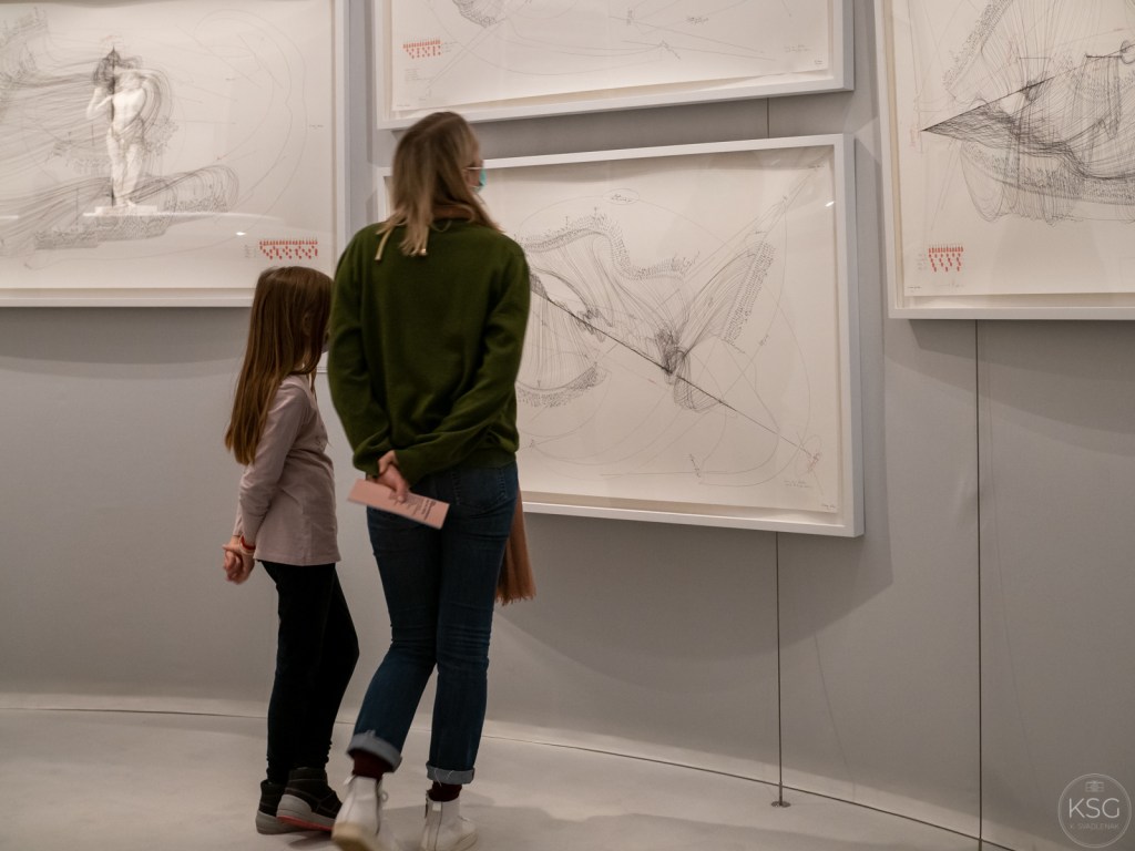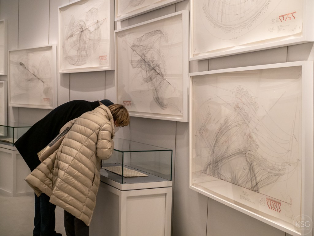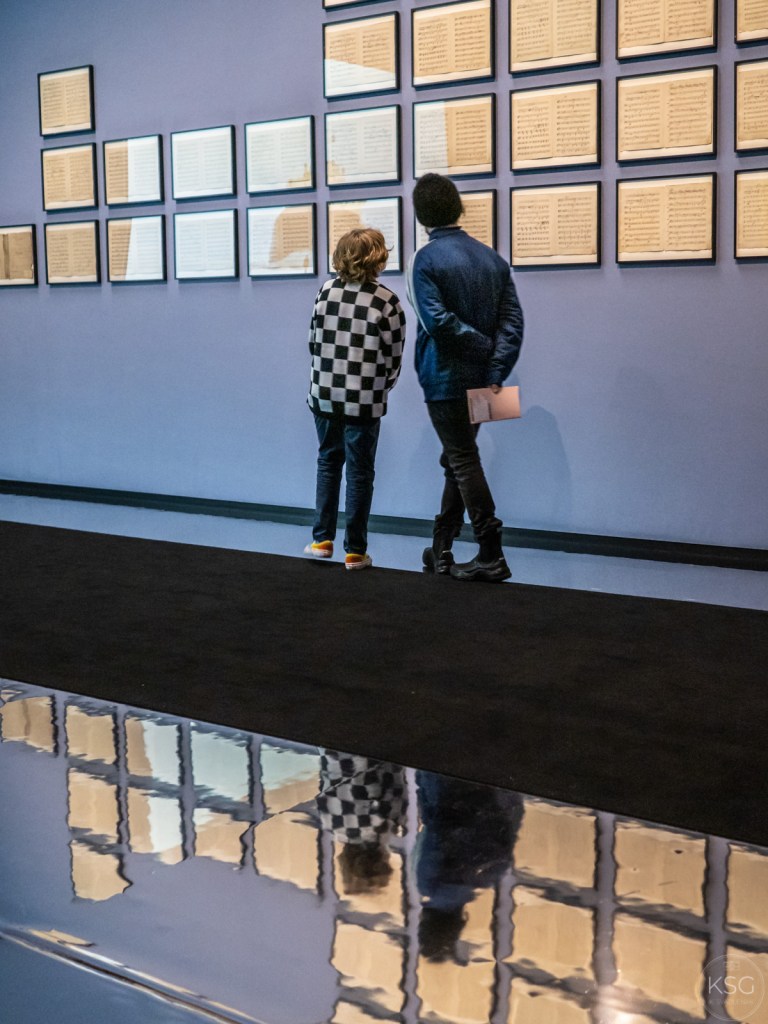 Apart from the artworks and musical scores exhibited in this room of the exhibition, and the sounds of Beethoven´s symphonies delighting viewers´ears, the shiny floor is a major attraction (at least for photographers, as it offers wonderful reflections of the artworks as well as the visitors engaging with them).
