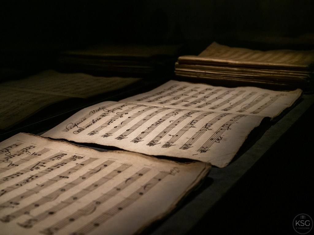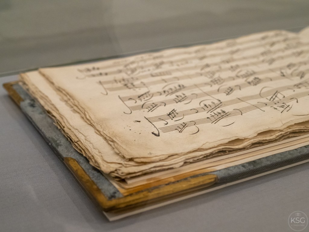 In the first room of the exhibition, the focus is on his sonatas. Visitors hear two of the piano sonatas written by the composer, the Waldstein Sonata (C major, op. 53) and his final Piano Sonata in C minor, op. 111., while also seeing contemporary artistic renderings of his sonatas next to Beethoven’s original autographs.