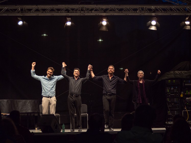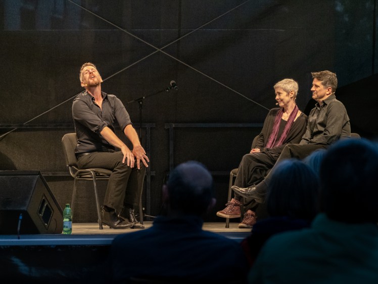Life is for lovers, isn´t it? I´m in love. Have been for a long time – with the English Lovers! This troupe of brilliant improvisers with nigh Shakespearean linguistic smarts has been performing in Vienna a good two decades. When I go to see a performance by the English Lovers, it is like meeting old friends. Just seeing Jim Libby, Michael Smulik and Bronwynn Mertz-Penzinger walk onto the KultursommerWien stage in Penzing last Thursday made me happy – and that was before the show even began.