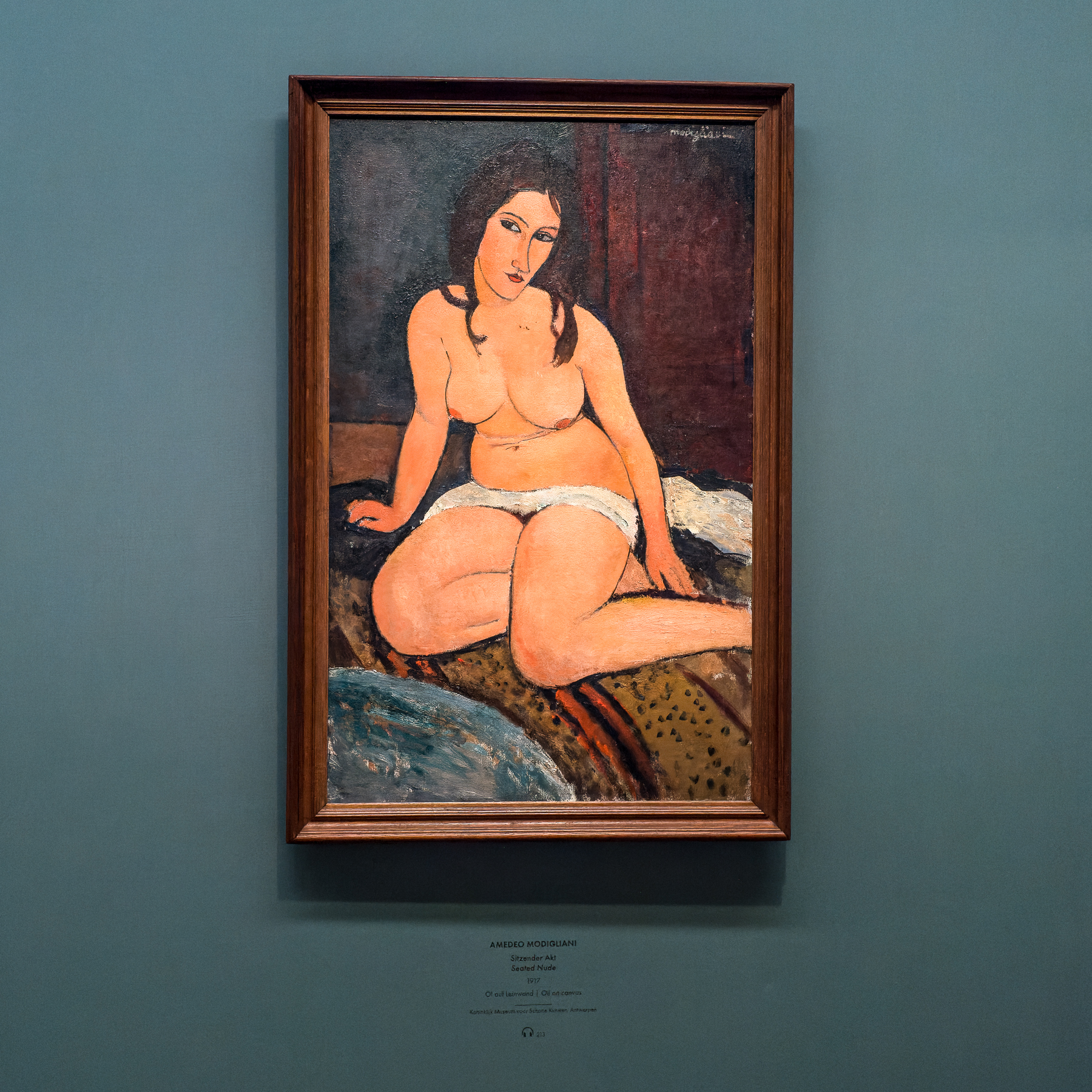Sadly, Modigliani was much affected by the scandal his exhibition caused, and for the rest of his life only painted another ten – now semi-clad – nudes along with nudes of his last life partner, the art student Jeanne Hébuterne.