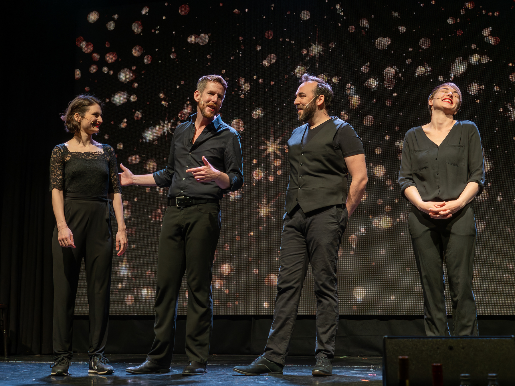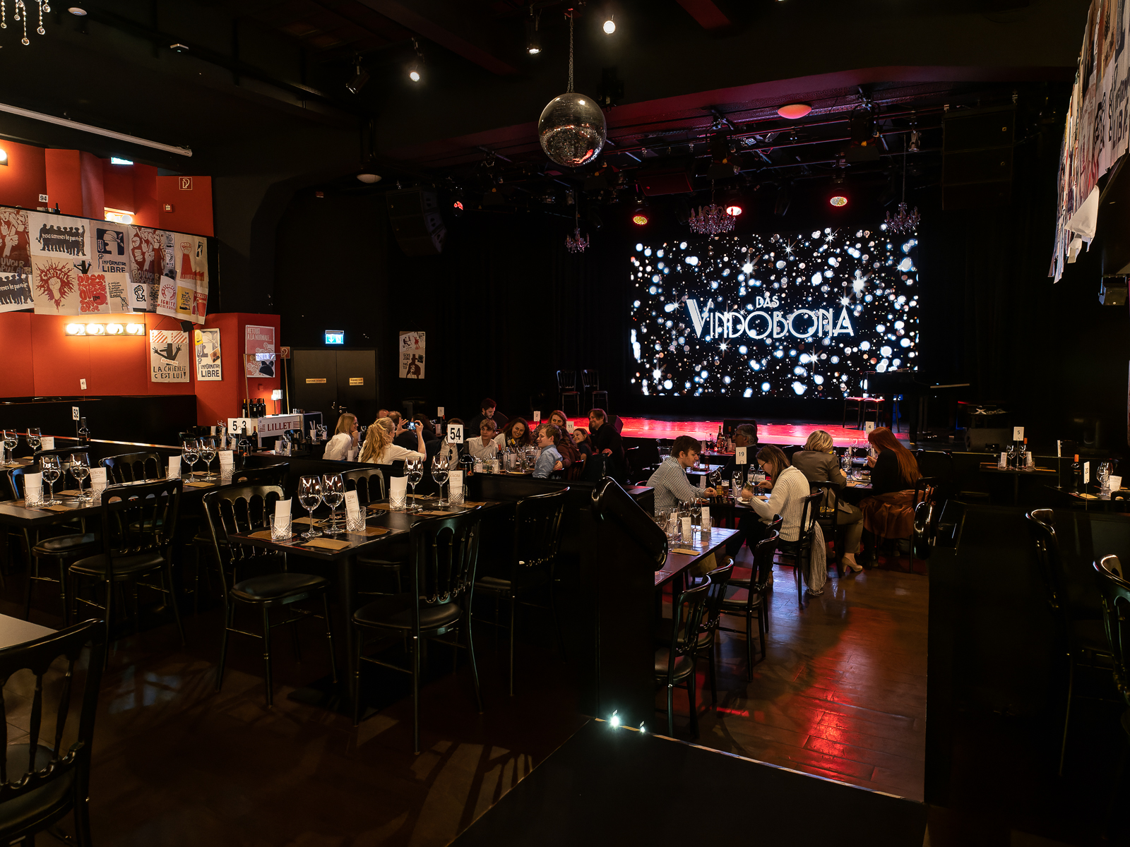 This week I discovered a (for me) new, but actually quite old, performance and supper venue in Vienna´s 20th district. The Vindobona on Wallensteinplatz near U4 Friedensbrücke is a multifunctional theater hall that offers a wide range of both in-house productions and guest theatre or musical performances, concerts, readings, varieté, burlesque and travesty shows, cabaret, etc. I found out about it because of an announcement of the new improv show “Plötzlich Premiere” by Jim Libby, whom I know and appreciate from the hilarious English Lovers. This time Jim was performing with a stellar group of German-language improv actors.
