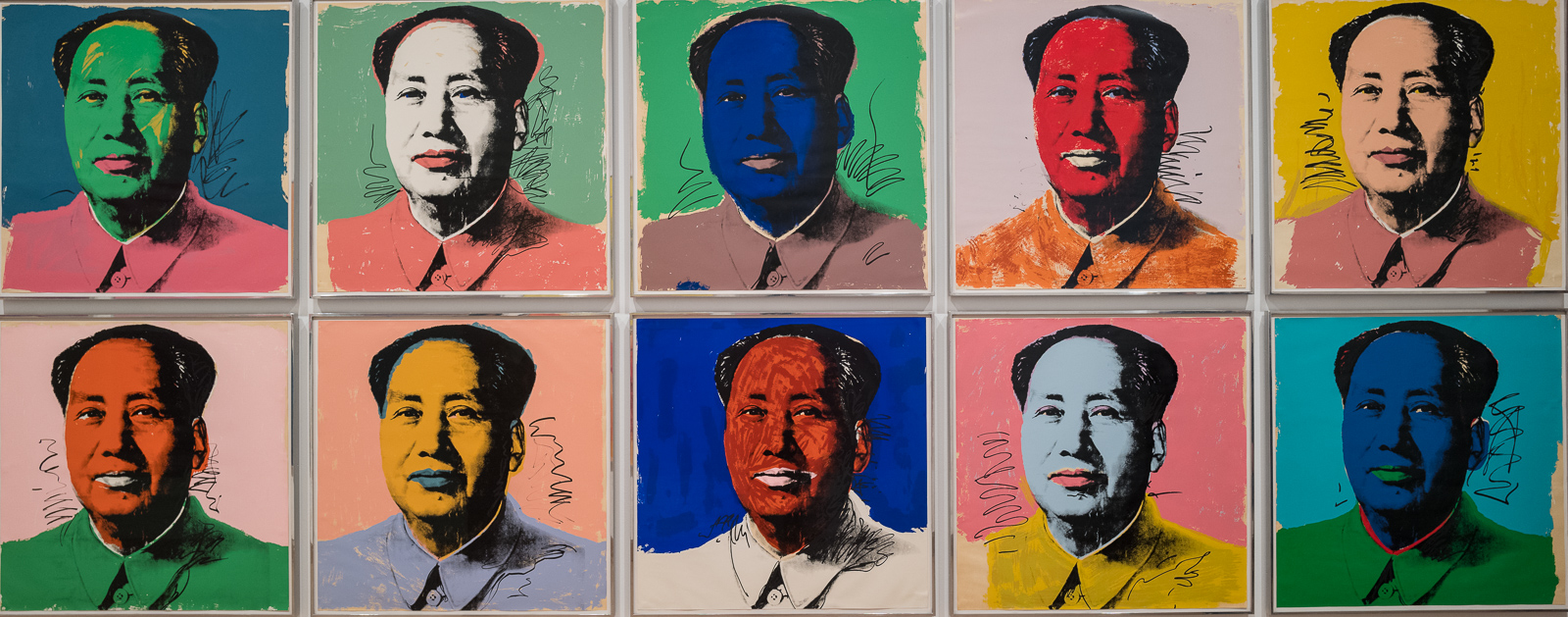 Andy Warhol, famous for his pop art, liked the process of printing a lot. It enabled him to repeat a basic image in many variations, simply by printing it in different colours or by adding paint to the printed image. One well-known example is his series of the Mao portrait.