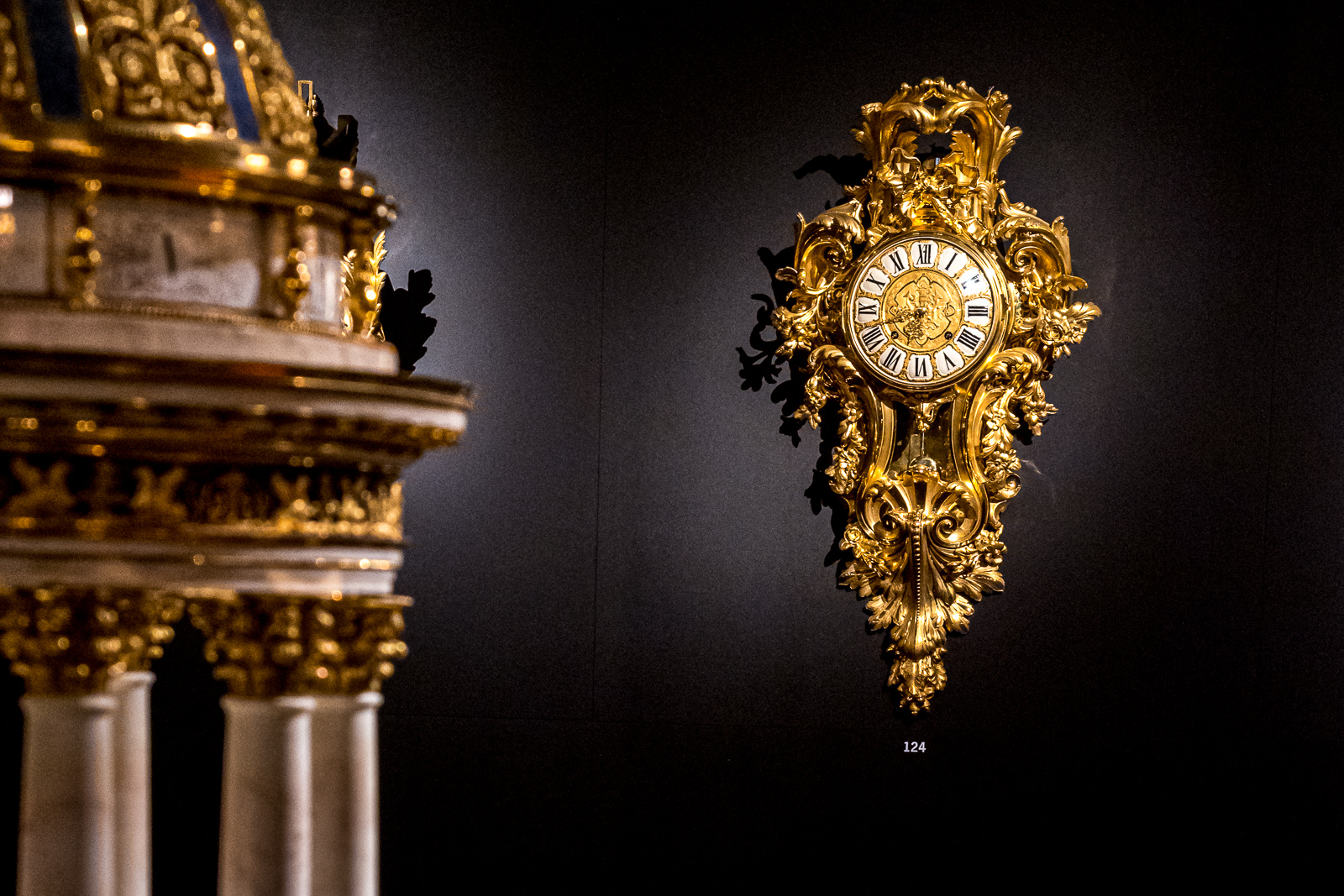 Last but not least, the library at the Garden Palais features some exquisite clocks, but is also well worth seeing just for its own beauty. Cartel clocks were very popular from the 1730s until well into the 19th century. One example is Robert Osmond´s Cartel clock with ornate bronze mounts from about 1755. It is a notable example of French Rococo clockmaking from the mid-18th century. The term “cartel clock” refers to a type of wall clock that was popular in France during the 18th century. These clocks were typically mounted on a flat wooden panel, or “cartel,” that was designed to be hung on a wall. The clock case was often highly decorative, with elaborate mounts and ornate details that reflected the tastes of the period.