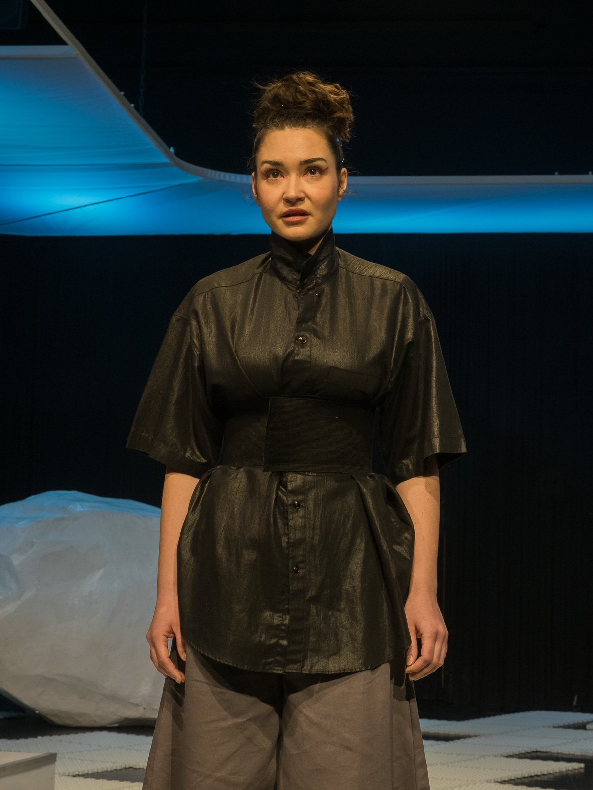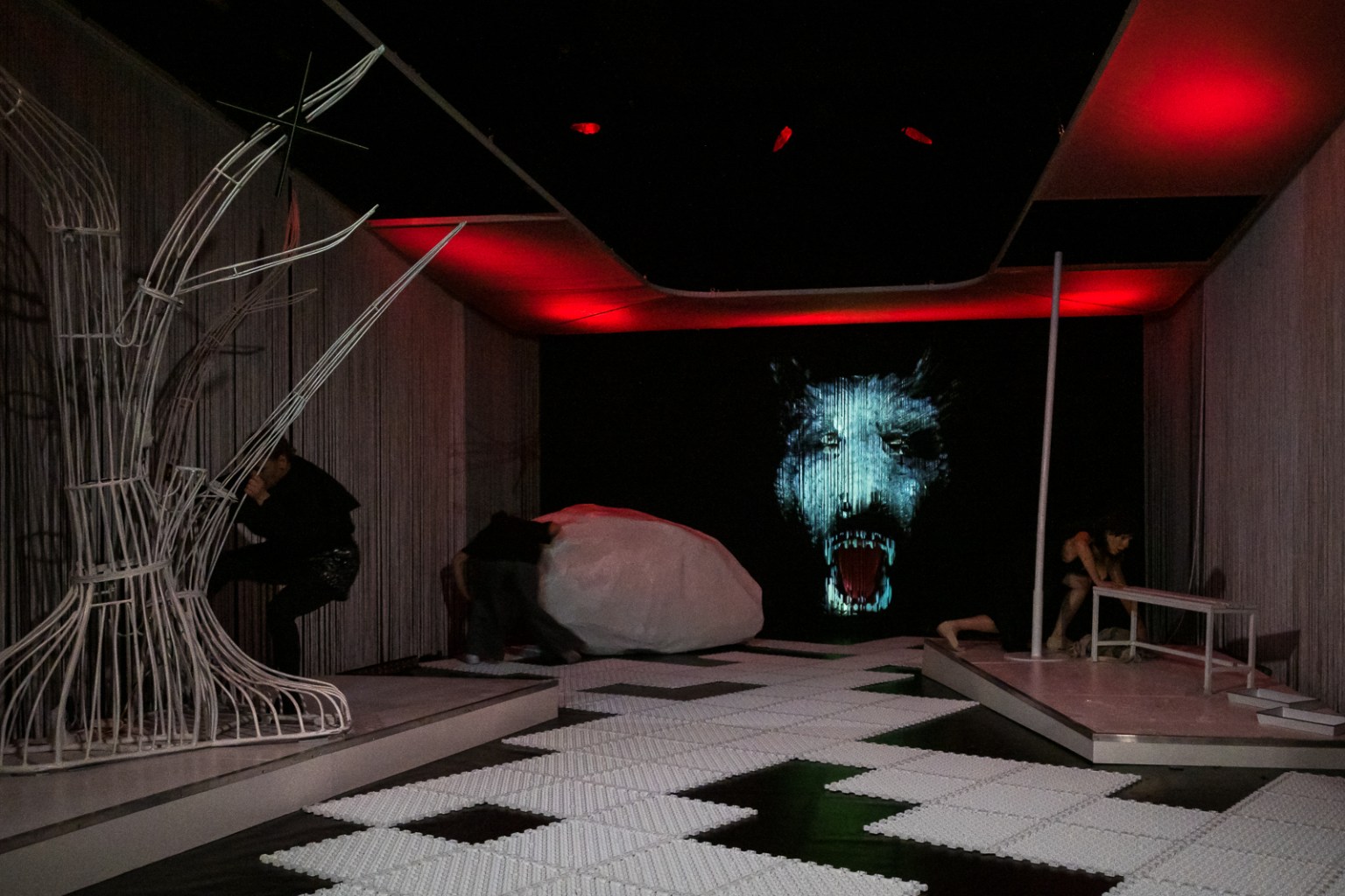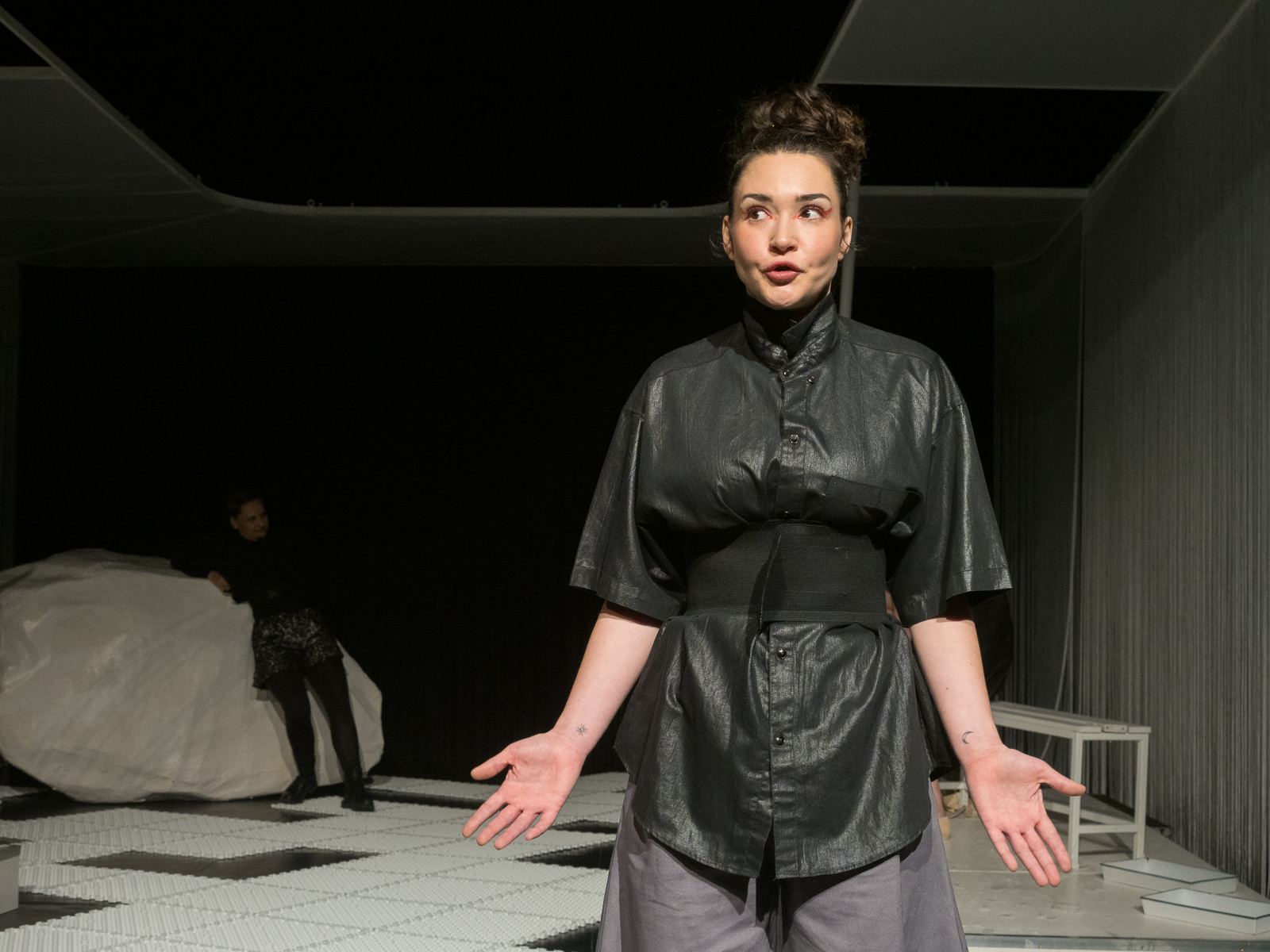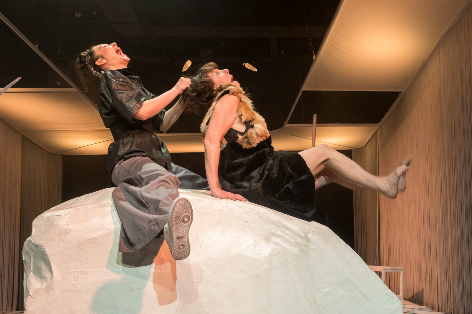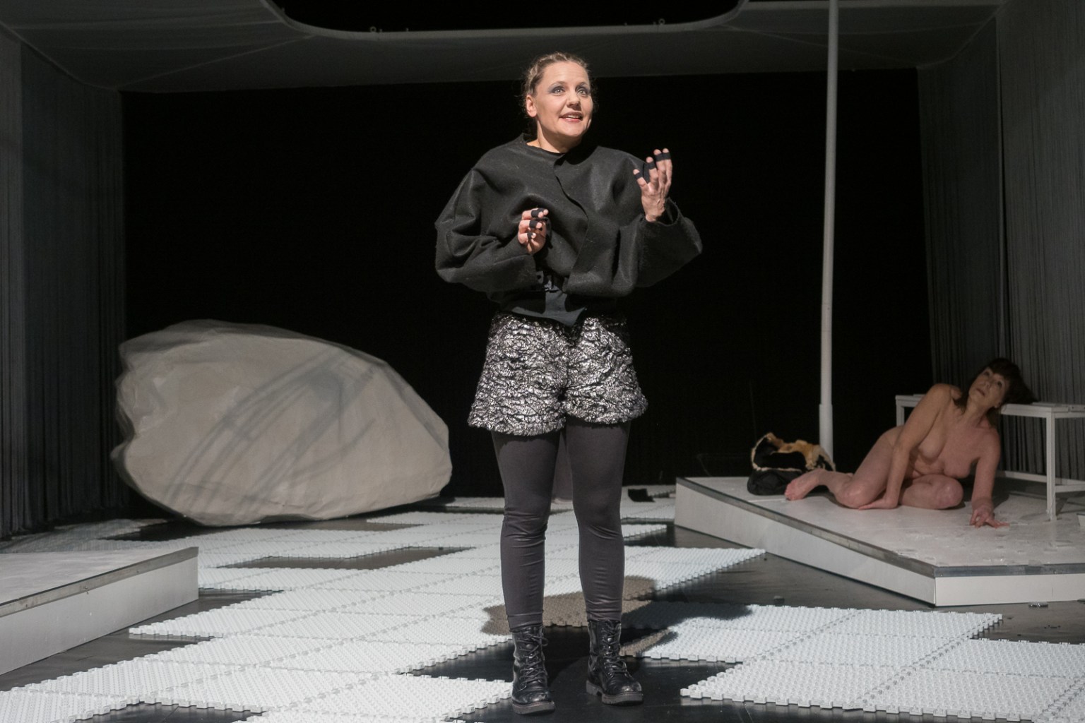 The play’s format is a combination of conversations, performative, and dramatic elements, including sound, projections, and music. The play’s form with three women from different walks of life who nevertheless find connection in the “wilderness” they meet in creates a constellation that exists outside of time. As they question each other and their reality, relate their past and experiences, they point up the need for a different kind of storytelling that can lead to a new and more inclusive future.