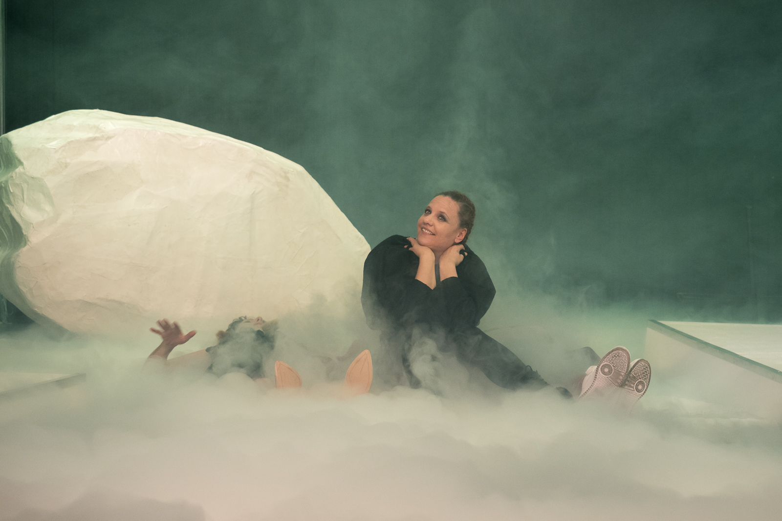 According to the directors Alexander Bauer and Chris Herzog, in view of increasing social polarization, which makes dialogue more difficult, the team is negotiating ways to live together in solidarity – even beyond the boundaries of the human species. The piece does not provide any clear answers, but rather illustrates the ambiguity and contradictions of reality based on the unusual encounter between three women and the resulting tensions. There are no easy answers to pressing problems, the situation is complex. When things are not so clear, enduring ambiguity becomes important. A better future can only be created by recognizing and understanding the complexity of the world. The joint departure of the three protagonists into indeterminacy is intended to show that a change of heart – perhaps becoming a bit “wilder” – and thereby a change of our future is possible.