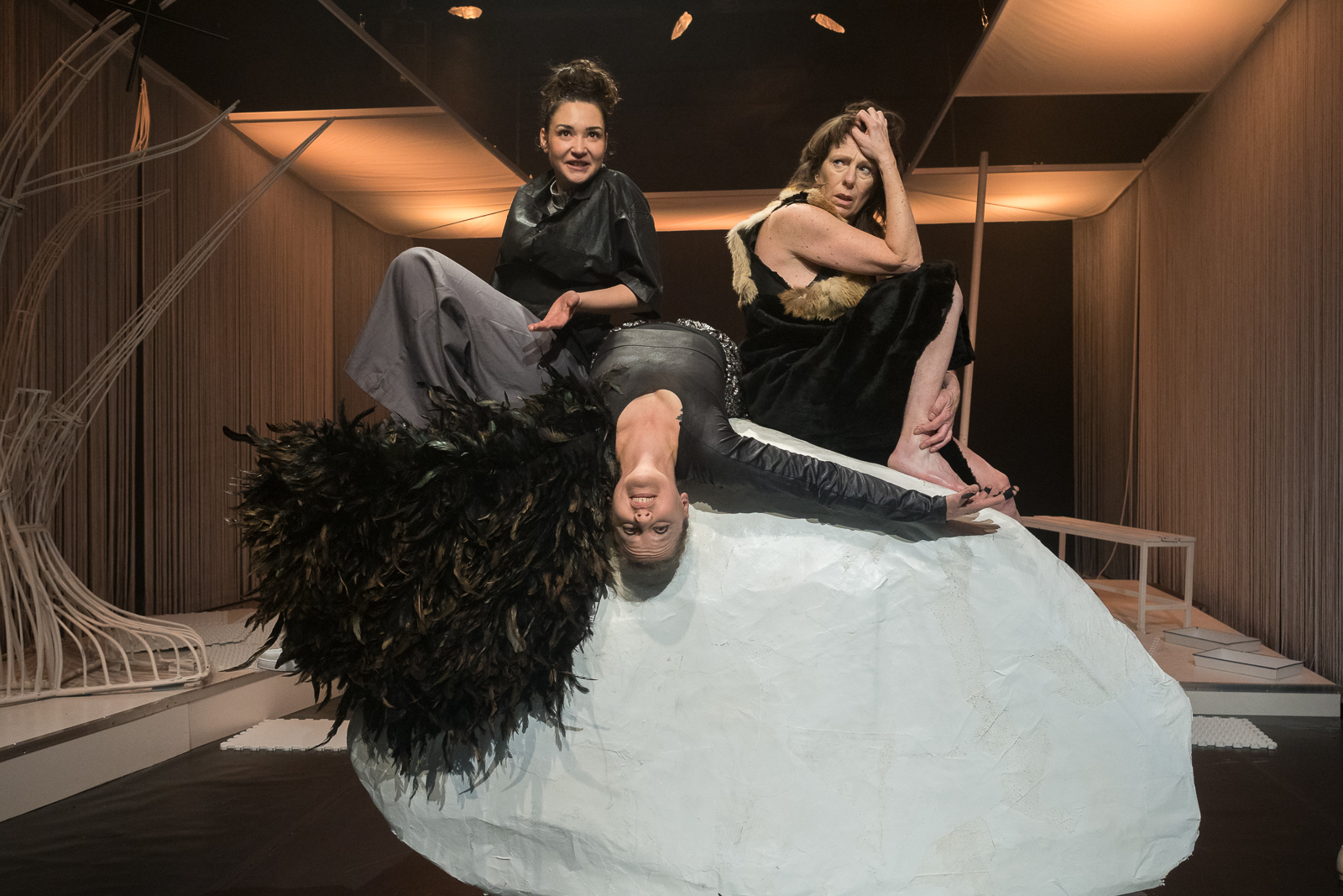 This second installment of a trilogy explores the contemporary complex challenges that our society is facing. After ‘Das verkommene Land’ revolved around the theme of memory and thus the past, ‘In the hearts of crows’ looks to the future. The play delves into various pressing topics such as gender inequality, the ecological crisis, human-animal relationships, and societal divisions based on age, origin, orientation, status, etc. The entire team, including actresses Zeynep Alan, Julia Amme, and Laila Nielsen, stage designer Elisabeth Schiller-Witzmann, and directors Alexander Bauer and Chris Herzog, grappled with their own inner conflicts and personal involvement in societal developments while creating the play. They realized that they couldn’t be neutral observers of the issues they were exploring. In a collaborative and organic process, the team crafted a profound text that addresses the complexities of our contemporary society.