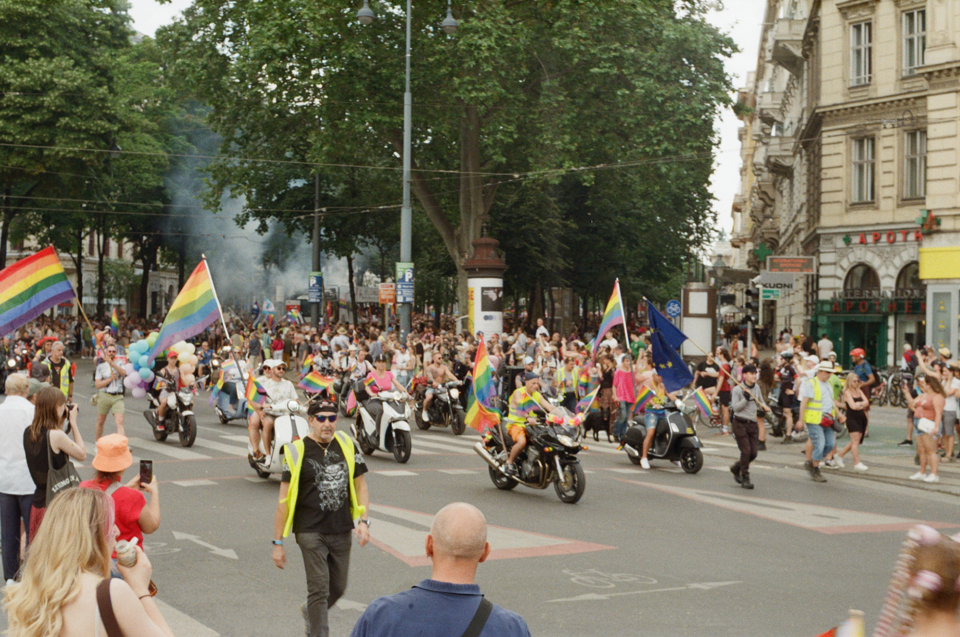 This is not the camera´s fault, of course. In June during the Vienna Rainbow Parade, part of the annual Pride Month celebrations, I tried it out again, this time with a roll of Fujicolor 200 film, a daylight-balanced film that is known for its versatility, affordability, and widespread availability.