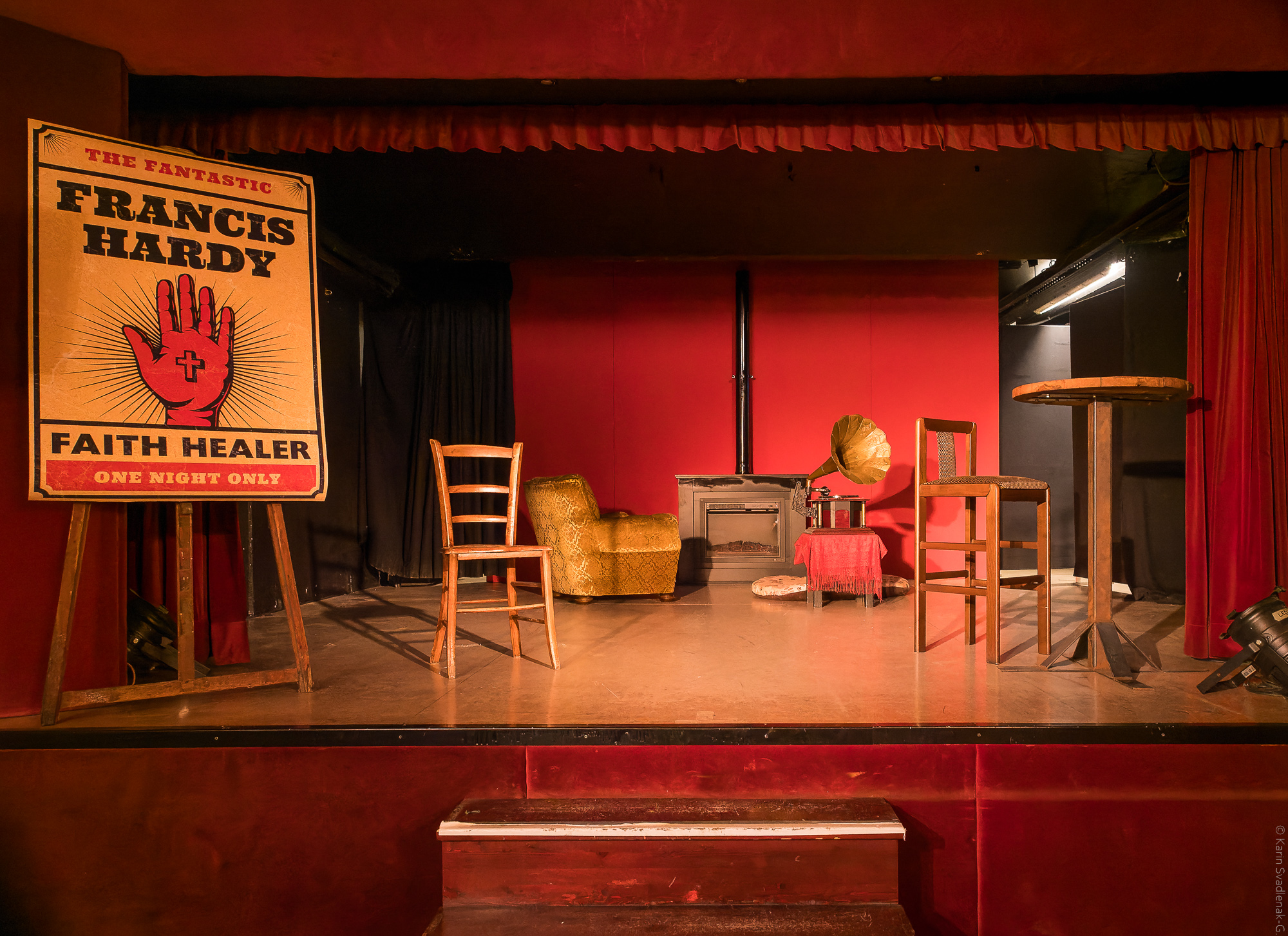 Embarking on a journey through the remote landscapes of Scotland and Wales, Frank offers his remedy to those who feel lost and despondent, destitute farmers and workers with hardly a penny to spare. Is his a genuine gift or merely a play on perception? “Aberarder, Aberayron, Llangranog, Llangurig, Abergorlech, Abergynolwyn, Llandefeilog, Llanerchymedd, Aberhosan, Aberporth, Inverbervie, Inverdruie, Invergordon, Badachroo, Kinlochewe, Ballantrae, Inverkeithing, Cawdor, Kirkconnel, Plaidy, Kirkinner, Kinlochbervie…,” the villages they pass through become the mantra Frank murmurs to himself before every show, full of self-doubt. The tales unravel, revealing moments of despair and tragedy, with the characters´ conflicting memories, told in consecutive monologues, making us wonder who is telling the truth. Or what is truth, anyway? Do Frank, Grace, and Teddy even know their own truth?