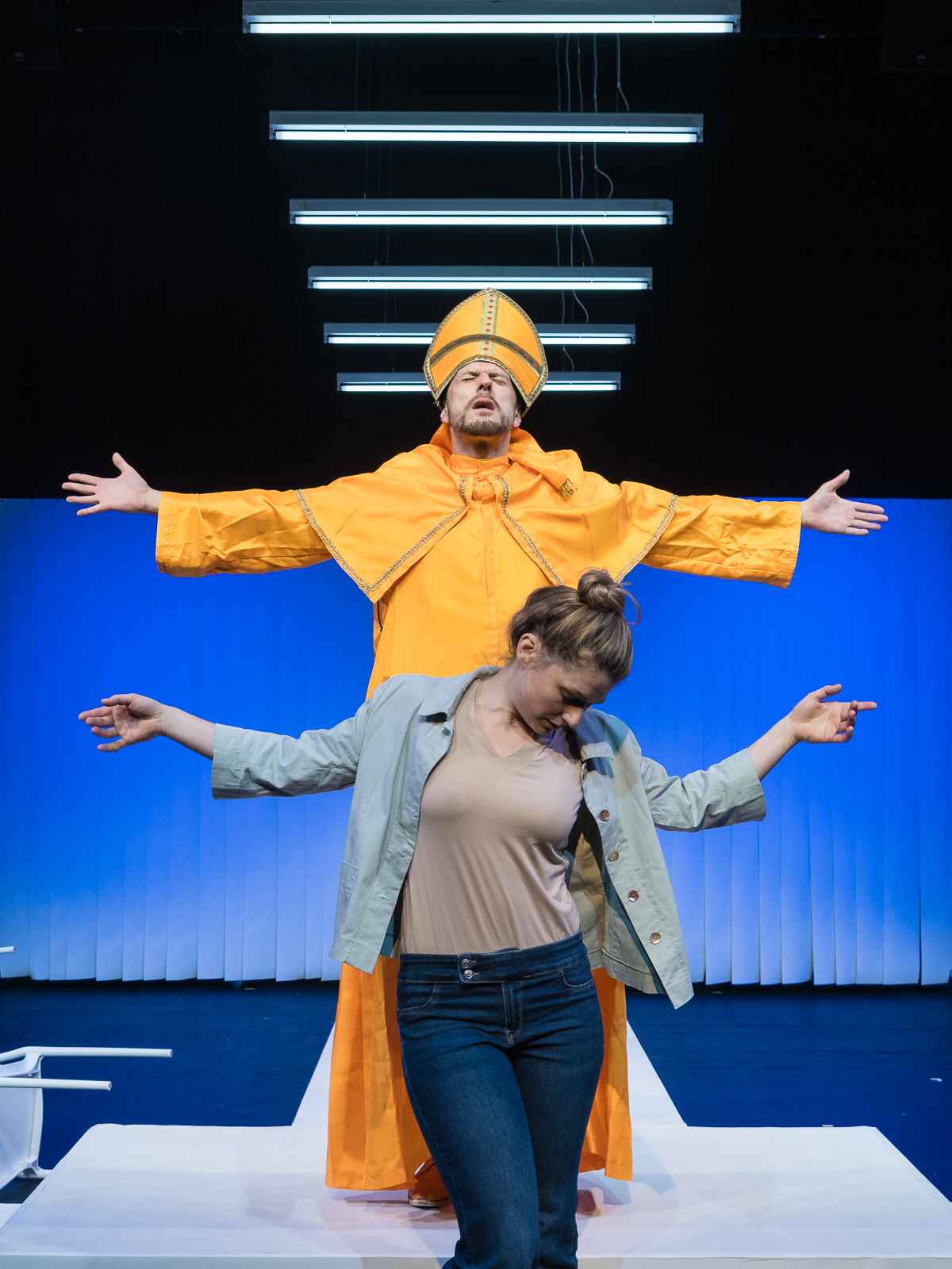 The ensemble delivers outstanding performances on stage: Sarah Zaharanski, Peter Bocek, and Maria Fliri impress with their emotionally charged acting and master a wide range of emotions and characters. The production is a successful interplay of stage, video (Caro Stark), costumes (Bettina Henning), and the precise direction of Barbara Herold, assisted by Elisabeth Kneissl. What could have been a dry, if emotion-charged, piece has been turned into a quite entertaining production.