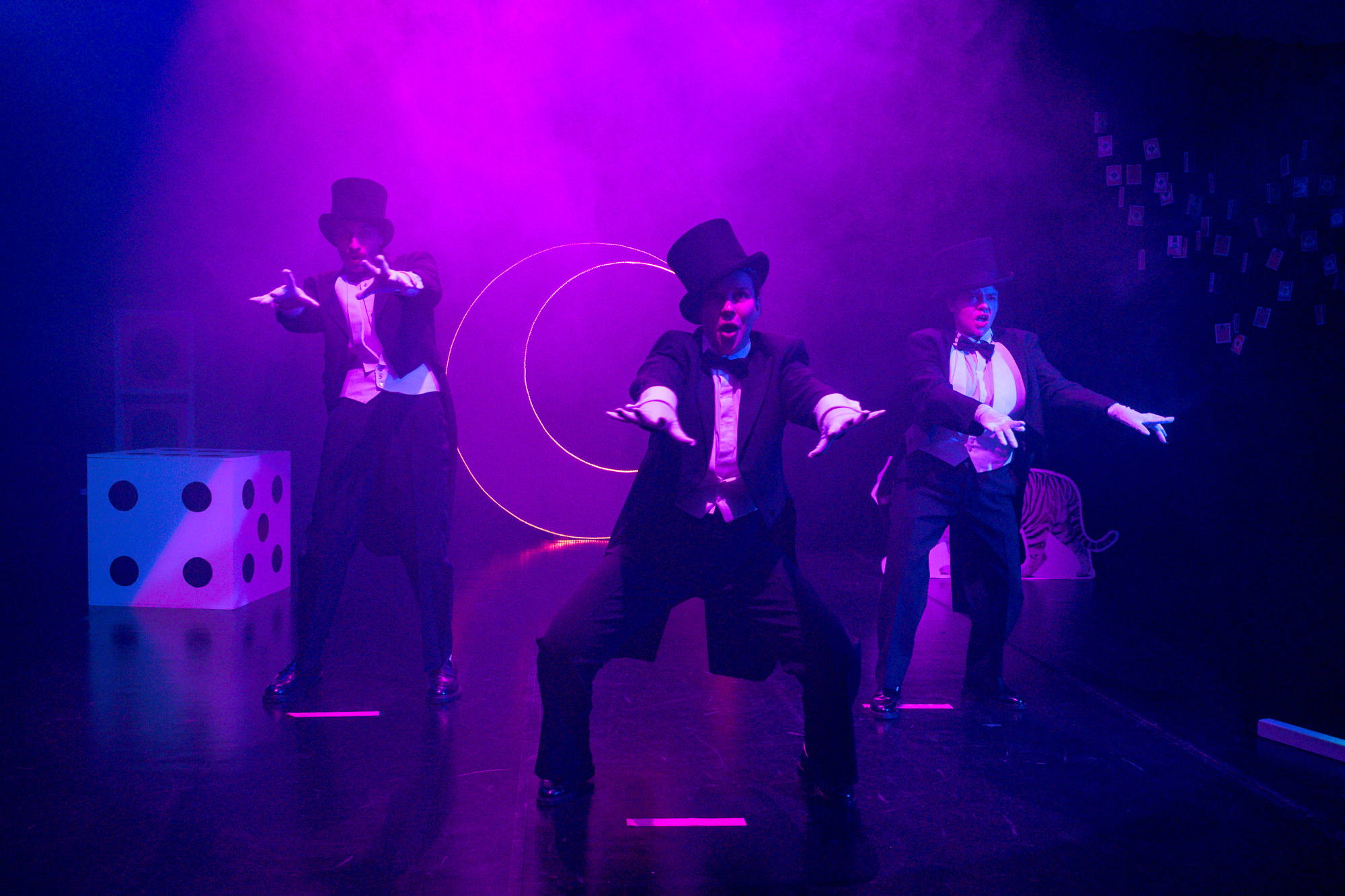 So zumindest die Behauptung der Schauspielenden. Nun, das sollte das Publikum nicht allzu ernst nehmen. Wohl wird gezaubert, allerdings mit mehr Ironie als Illusion. Wenn die “Wahrheit” gesagt wird, wird sie verzerrt. Was ist wahr, was ist Lüge? Das kann man auf eine Zaubershow beziehen, aber auch auf das Leben. Und kann man Probleme so einfach in eine Box werfen – die Box der Pandora nämlich – und sie so zum Verschwinden bringen? Wohl kaum.