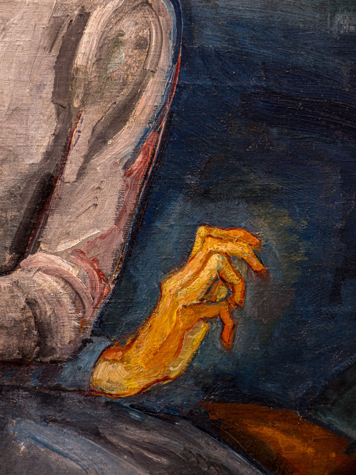 In Lilly Steiner’s Portrait of Lilian Gaertner (1927), the subject’s hand gesture is quietly expressive—and unmistakably intentional. The young woman´s fingers are slightly spread and tense, drawing attention to an emotional interior, which reflects the influence of modern portraiture in the interwar years, when artists like Steiner moved away from strict academic representation and instead began to imbue physical gestures with psychological weight.