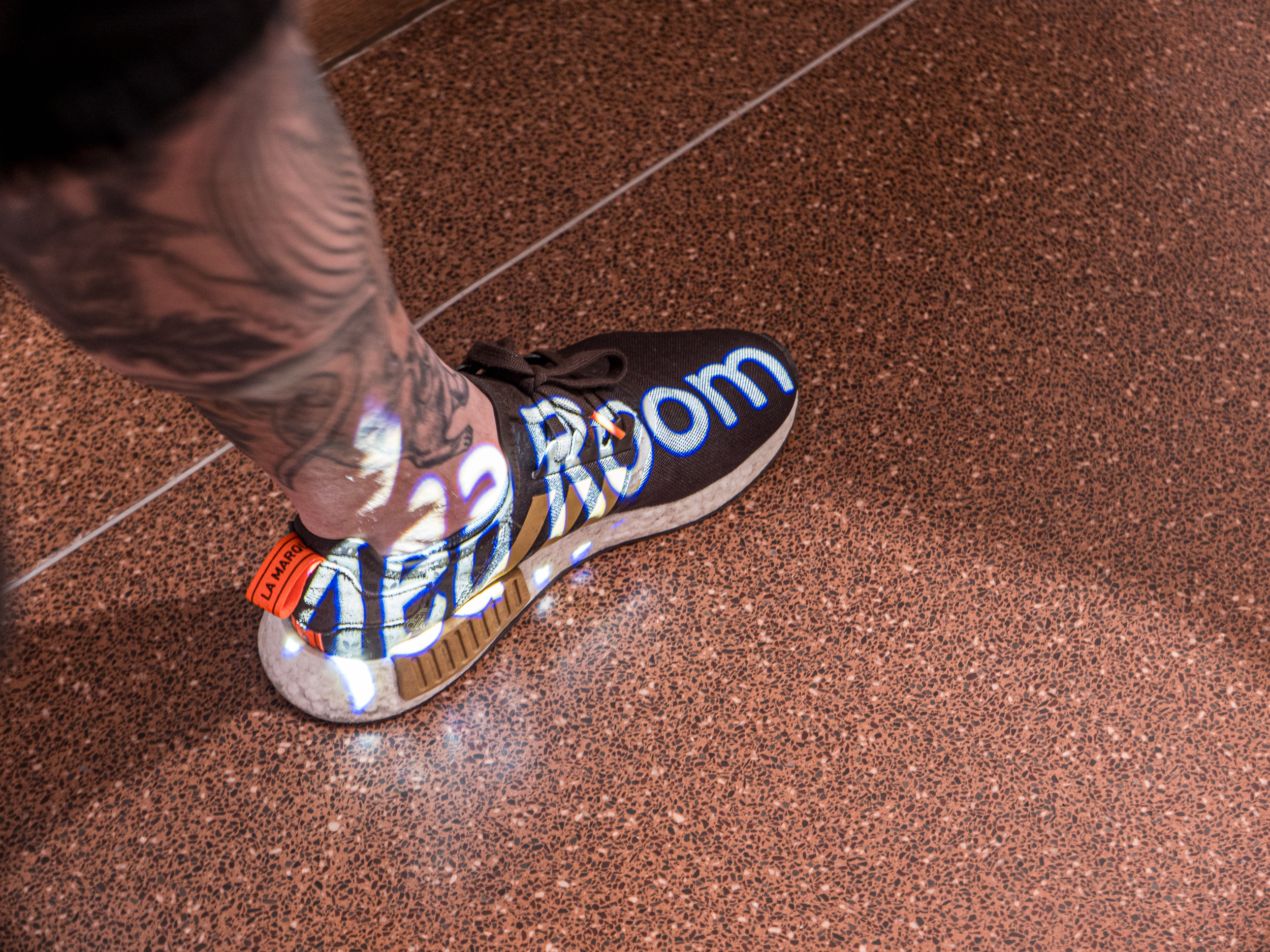One playful visual moment? A projected floor sign reading tea room reflected off a visitor’s sneaker, turning wayfinding into unexpected artwork. It’s the kind of detail that feels entirely at home here.